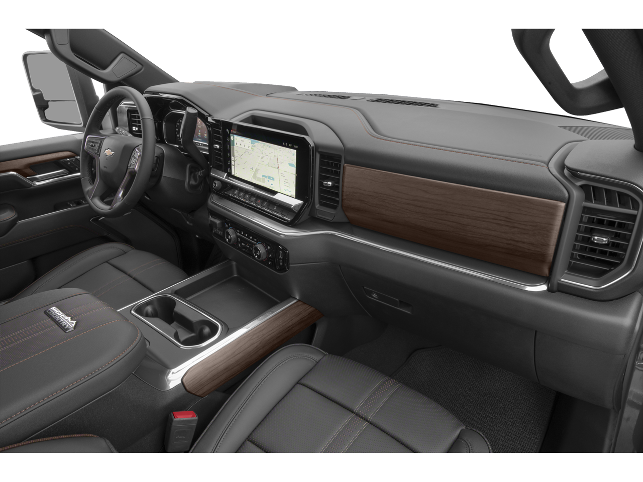 Well Equipped with Gooseneck/5th Wheel Prep Package (Black Chevytec Spray-on Bedliner), High Country Premium Package (Power Sunroof), Preferred Equipment Group 3LZ (120-Volt Bed Mounted Power Outlet, 120-Volt Interior Power Outlet, 170 Amp Alternator, 6 Rectangular Chromed Tubular Assist Steps, Auto-Dimming Inside Rear-View Mirror, Bed View Camera with Two Trailer Camera Provisions, Bluetooth® For Phone, Chevrolet Connected Access Capable, Chrome Door Handles, Chrome Mirror Caps, Color-Keyed Carpeting Floor Covering, Compass, Deep-Tinted Glass, Durabed Pickup Bed, Electric Rear-Window Defogger, Front Bucket Seats, Front Carpeted Floor Mats, Front Chrome Recovery Hooks, Front LED Fog Lamps, Front Rain-Sensing Wipers, Heated 2nd Row Outboard Seats, Heated Steering Wheel, Hitch Guidance with Hitch View, in-Vehicle Trailering App System, Keyless Open and Start, LED Cargo Area Lighting, Manual Tilt and Telescoping Steering Column, OnStar Services Capable, Perforated Leather Seat Trim, Polished Exhaust Tip, Power Door Locks, Power Front Windows with Driver Express Up/Down, Power Front Windows with Passenger Express Up/Down, Power Rear Windows with Express Down, Power Sliding Rear Window with Defogger, Power Up/Down Tailgate Function with Power Lock and Release, Push Button Start, Rear Carpeted Floor Mats, Rear Cross Traffic Alert, Rear Wheelhouse Liners, Remote Vehicle Starter System, SiriusXM with 360L Trial Subscription, Standard Tailgate, Steering Wheel Audio Controls, Trailer Camera Provisions, Ultrasonic Front and Rear Park Assist, Unauthorized Entry Theft-Deterrent System, Universal Home Remote, Wheels: 20 8-Spoke Polished, Wi-Fi Hotspot Capable, Wireless Charging, Wireless Phone Projection, and Wrapped Steering Wheel), Suspension Package, Technology Package (15 Diagonal Multicolor Head-Up Display and Rear Camera Mirror), Up-Level Rear Seat with Storage Package, 10-Speed Automatic, 4WD, Jet Black/Umber Leather, 10-Way Power Driver Seat Adjuster with Lumbar, 10-Way Power Passenger Seat Adjuster with Lumbar, 220 Amp Alternator, 4-Wheel Disc Brakes, 7 Speakers, 720 Cold-Cranking Amps Heavy-Duty Battery, ABS brakes, Air Conditioning, Alloy wheels, AM/FM radio: SiriusXM with 360L, Apple CarPlay/Android Auto, Auto High-beam Headlights, Auto-dimming door mirrors, Auto-dimming Rear-View mirror, Automatic temperature control, Bodyside moldings, BOSE Premium 7-Speaker Sound System, Brake assist, Bumpers: body-color, Delay-off headlights, Driver door bin, Driver Memory, Driver vanity mirror, Dual front impact airbags, Dual front side impact airbags, Electronic Stability Control, Emergency communication system: OnStar, Engine Block Heater, E
